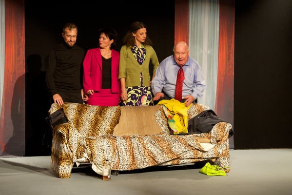 Der Hausherr kehrt unverhofft zurück, in Begleitung seiner Geliebten. Nun wird von beiden Seiten gedroht und verhandelt und gerade als sich eine Lösung anbahnt, steht die Frau des Hausherrn vor