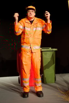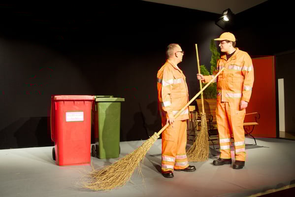 Kleider machen Leute. Zwei Strassenkehrer bei der Arbeit. Der eine ein durchschnittlicher Mensch, der mit seinem Leben im Grossen und Ganzen zufrieden ist und es so nimmt wie es ist. Der andere