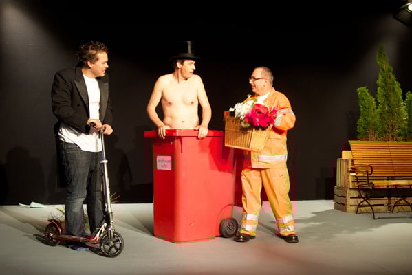Nun stellt sich die Frage wie kommt ein nackter Graf ohne Skandal zurück zu seiner Ehefrau? Und was haben die beiden Strassenkehrer, ein Wachmann, eine Hure und eine Rosenverkäuferin damit zu