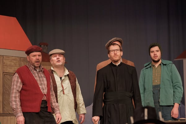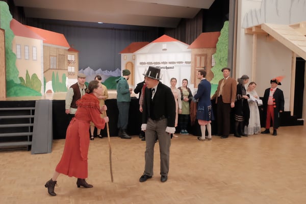So nimmt das Stück seinen Lauf, der Umgang mit dem Fremden mischt das stillbequeme Dorfleben gehörig auf und durcheinander, bald wird die Liebe wichtiger als alle Verteidigung, und der allgegenwärtige Tod mischt in dieser vor prallem Leben strotzenden Geschichte auch immer mit. Ein derbes, buntes Stück Theater, mit Bergkulisse und vielen Liedern, das trotzdem so ganz nah an unser Leben rührt.
